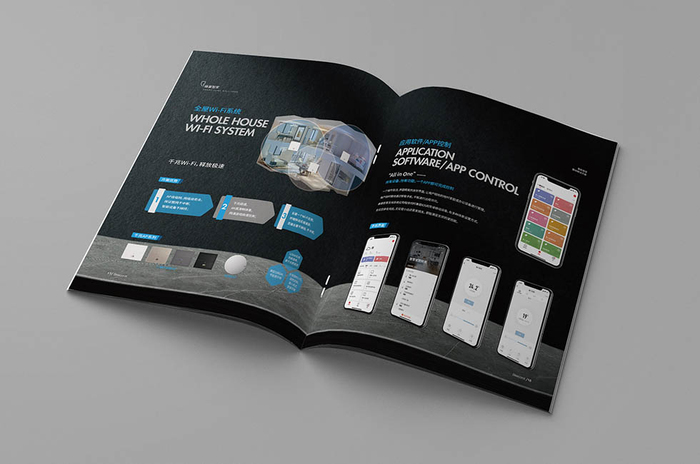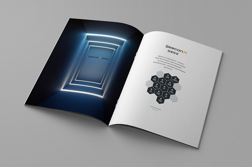 項(xiàng)目背景:蜂巢智家(BeeconX)智能家居系統(tǒng)是一個(gè)綜合性系統(tǒng),覆蓋照明、暖通、安防、影音娛樂、全屋Wi-Fi等日常各種功能需求,為客戶提供多業(yè)務(wù)融合解決方案,精簡(jiǎn)的組網(wǎng)架構(gòu),家庭無需重復(fù)布線,多網(wǎng)合一,實(shí)現(xiàn)智能照明、智能控制、智能家電等設(shè)備的互聯(lián)互通。艾的爾承接其畫冊(cè)設(shè)計(jì)制作,成立品牌設(shè)計(jì)小組,與企業(yè)進(jìn)行深入溝通,明確企業(yè)對(duì)于畫冊(cè)設(shè)計(jì)的需求,封面整體色采用黑色,寓意高端、科技、智能。