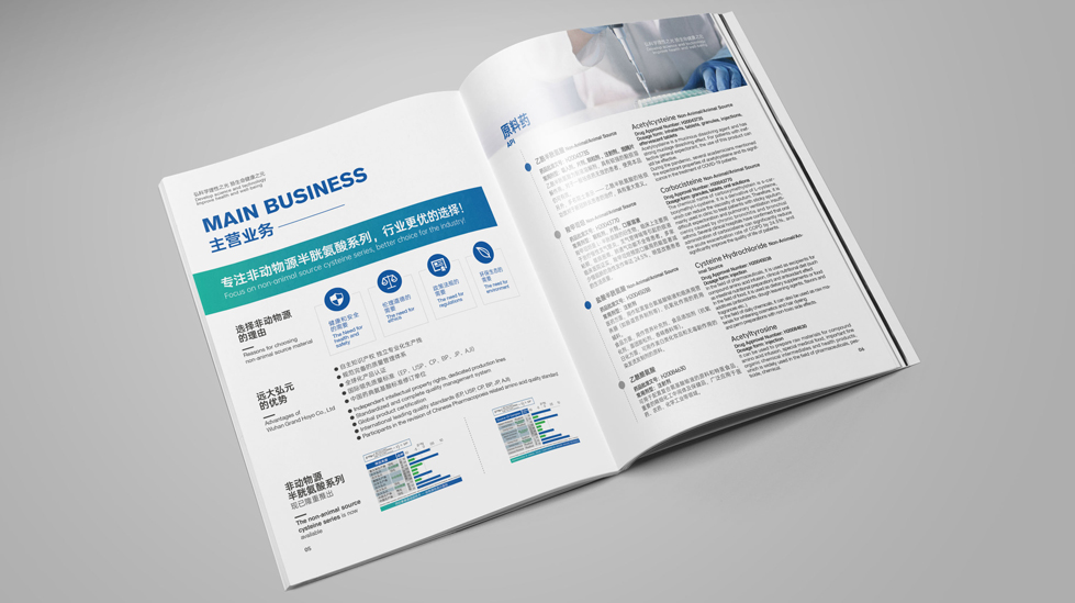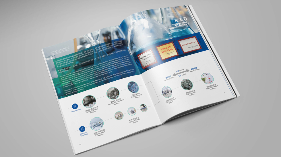 項目背景:武漢遠大弘元股份有限公司前身是原武漢大學(xué)校辦企業(yè)——武漢大學(xué)生物工程技術(shù)公司,2000年進行了股份制改造,2008年遠大醫(yī)藥(中國)有限公司通過收購重組與武漢大學(xué)等單位達成戰(zhàn)略合作。公司以氨基酸及其衍生物的研發(fā)、生產(chǎn)為基礎(chǔ),以武漢大學(xué)生命科學(xué)學(xué)院和湖北省氨基酸工程技術(shù)研究中心的成果為依托,致力于生物醫(yī)藥領(lǐng)域的高新技術(shù)產(chǎn)業(yè)化。艾的爾承接其畫冊設(shè)計制作,成立品牌設(shè)計小組,與企業(yè)進行深入溝通,明確企業(yè)對于畫冊設(shè)計的需求,通過對企業(yè)行業(yè)屬性和主要服務(wù)的深入了解和研究,在畫冊設(shè)計、創(chuàng)意的過程中,重點將“弘揚科技 健康之元”的主旨展示出來,畫冊主要介紹企業(yè)的氨基酸相關(guān)技術(shù),主題為“創(chuàng)一流氨基酸企業(yè),還原于社會”。封面大膽留白,使主題突出,清晰抓人眼球。風(fēng)格設(shè)計簡約但不簡單,突出信息主題,版面設(shè)計中可以看出設(shè)計師在設(shè)計過程花了不少心思,例企業(yè)文化版塊中將DAN大圖利用黃金比例分割占中間排版,表明基因是DNA,氨基酸的合成受基因影響,猶如企業(yè)的發(fā)展歷程,一步一步形成了如今的遠大弘元。每個版面中的插圖、排版、都直入主題,點明中心。