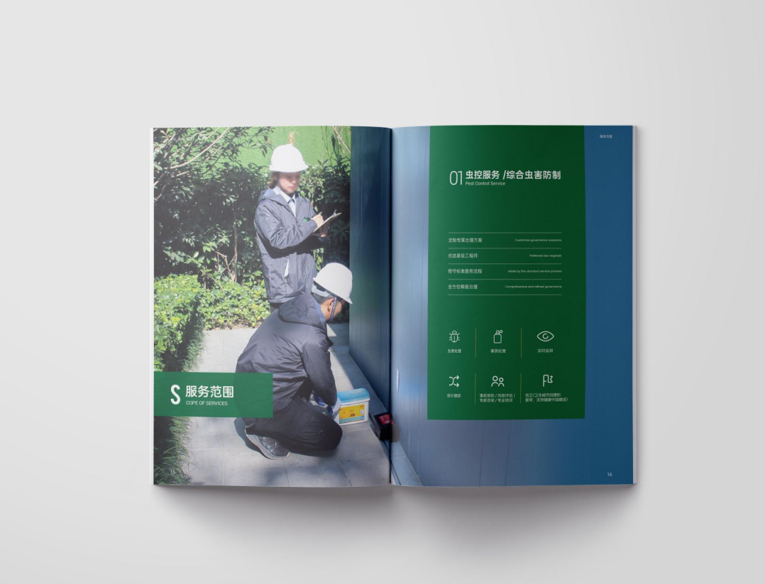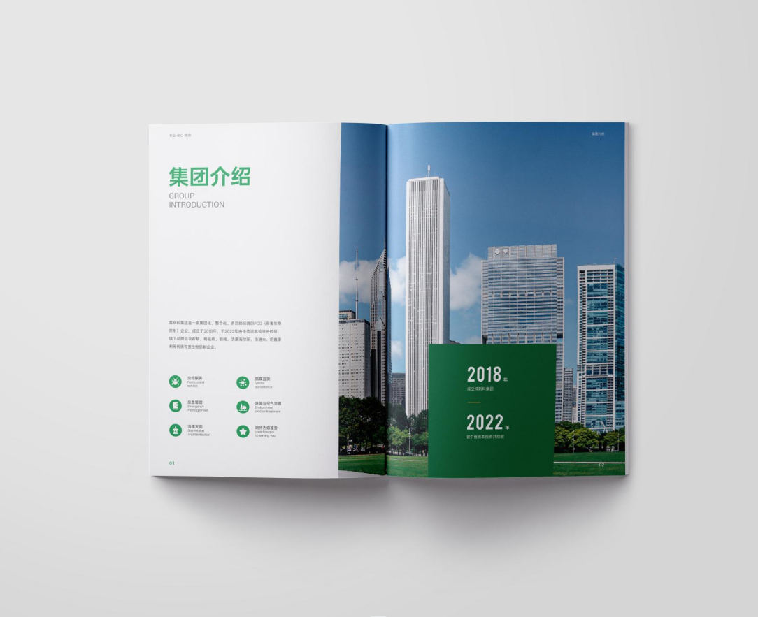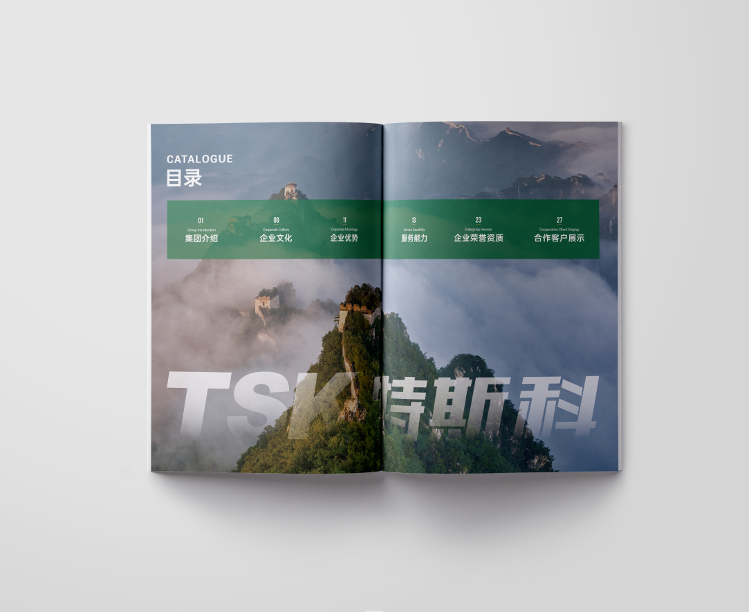 項目背景:TSK特斯科集團是一家集團化、整合化、多品牌經(jīng)營的PCO(有害生物防制)企業(yè)。致力于在蟲控服務、應急管理、環(huán)境與空氣治理、消毒殺菌等方面為客戶提供貼心可靠的服務與安心高效的保障。服務內(nèi)容涵蓋從技術檢查和日常預防性檢查,到蟲害預防、控制凈滅工作、清除害蟲污染物、專業(yè)消毒等全過程。此外還針對不同行業(yè)的客戶需求,協(xié)助管理供應鏈,提供包括人員培訓、蟲害風險咨詢、鑒定報告、通過內(nèi)外部審計等高附加值服務。艾的爾設計通過與企業(yè)進行深入溝通,明確企業(yè)對于畫冊設計的需求,畫冊封面內(nèi)容簡潔并突出重點,綠色的采用,與品牌vi調(diào)性一致,符合行業(yè)屬性,在內(nèi)頁的設計中,按黃金分割比例設計,標題與文字的板塊相互呼應,圖文分布疏密有致,整個版面簡潔優(yōu)雅。畫冊內(nèi)頁的顏色選用上,和封面相互呼應,以綠白等清新雅致的顏色為主。整個畫冊,設計精簡、嚴格,充分展現(xiàn)出了企業(yè)的訴求和形象。